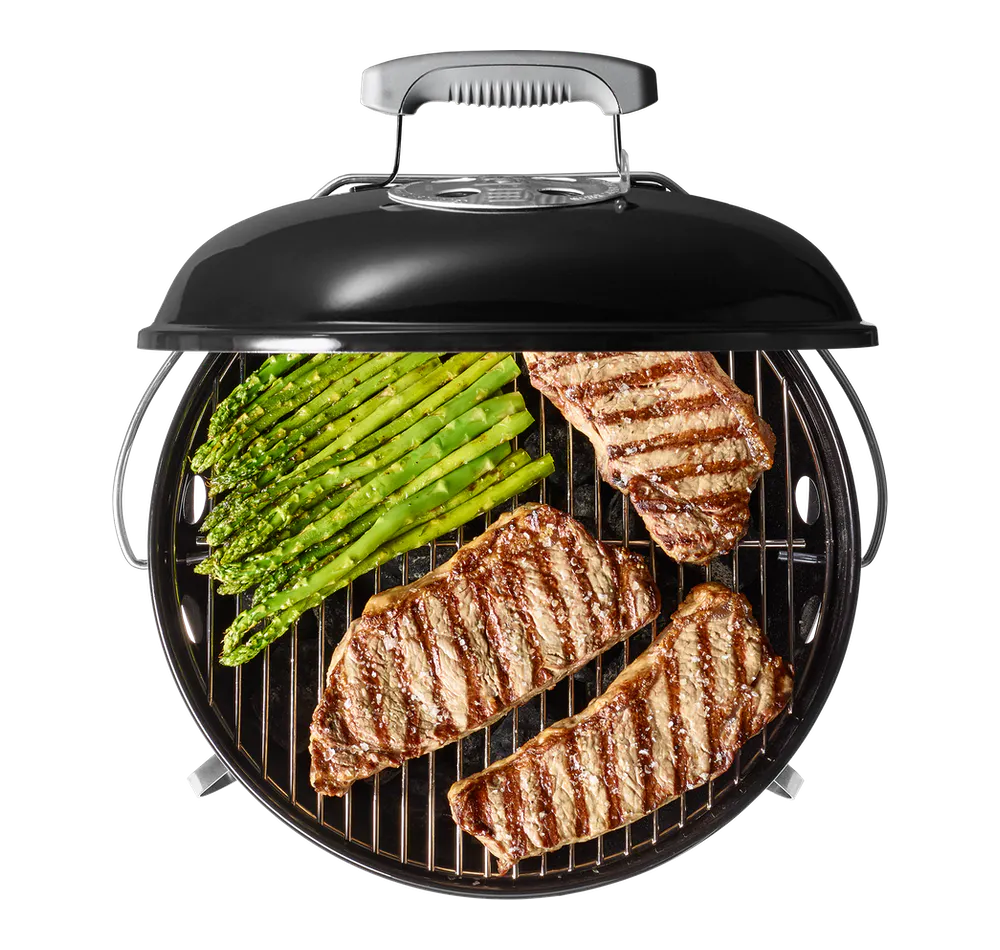 Weber have added a lid lock for carrying which lowers to double as a lid holder so that the lid can be used as a windshield when lighting the coals making it an even more successful barbecue for transportability and taking out and about with you on adventures.